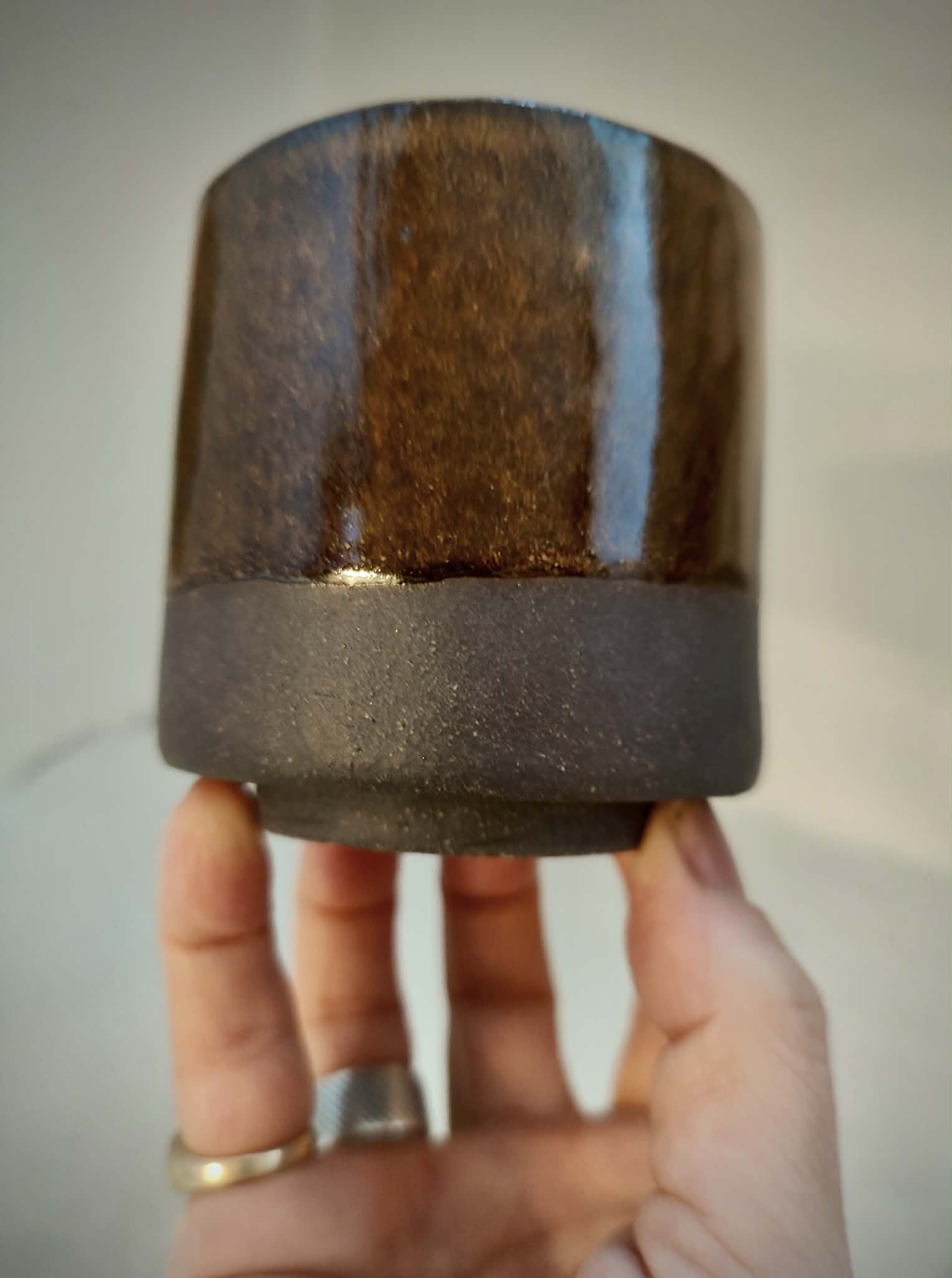 Håndformet kop med fod.