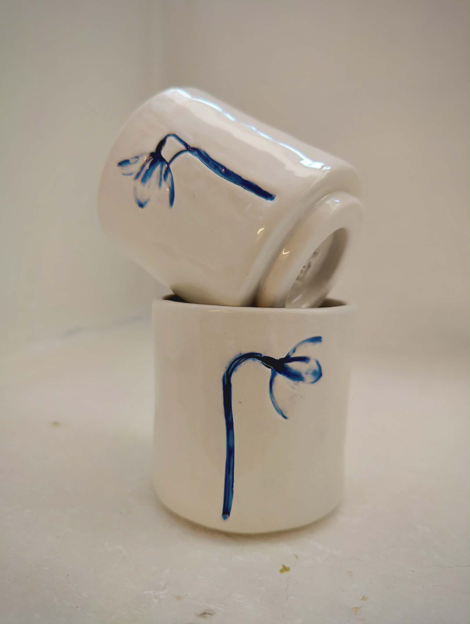 Jeg har altid elsket både vintergækker og keramik – i disse kopper mødes de i en stille fortælling om forår, håb og det unikke i det håndlavede.